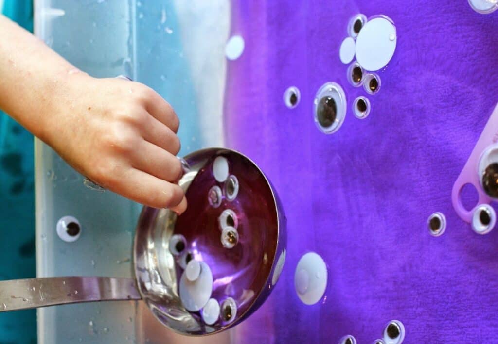 Pentru asta vei avea nevoie de: un bol de dimensiuni mai mari sau o cutie de plastic, pe care le vei umple pe jumătate cu apă. Mai apoi vei adăuga săpun lichid și vei amesteca până se va forma o spumă pufoasă deasupra. În interiorul bolului/cutiei poți să pui jucăriile preferate ale copilului tău.