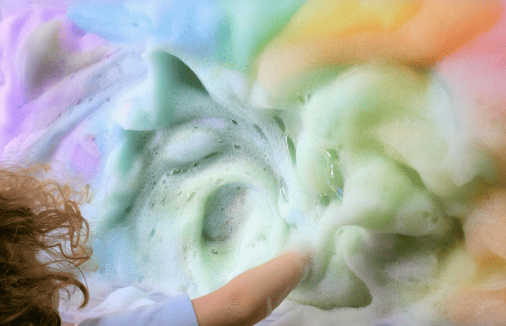 Rolul acestei activități este unul senzorial: cei mici vor descoperi textura ciudată a spumei de săpun, aceasta fiind ca o barieră în drumul către jucării.