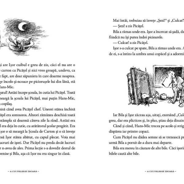 In Tara lui Hans-Mic, toata lumea merge la Scoala de Carton, unde poti invata litere sau ce-or fi ele, unde se asculta Baubeethoven, se citeste Dadante si se joaca Hamhamlet, unde aniversarea ta poate fi si de trei ori pe saptamana si unde poti afla lucruri importante (despre bete, de exemplu).