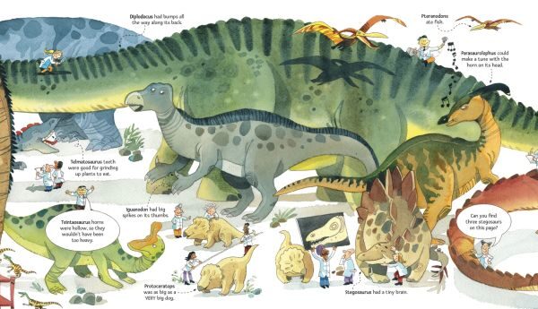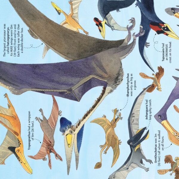Pentru micii fani ai faptelor, aceasta carte ilustreaza si descrie aproape 100 de dinozauri, pterozauri, ichtiozauri si alte creaturi preistorice. Accentul este pus pe DIMENSIUNE: cat de mari, inalti si grei erau aceste creaturi? Care a fost cel mai mare (si cel mai mic) dintre toate?