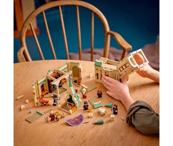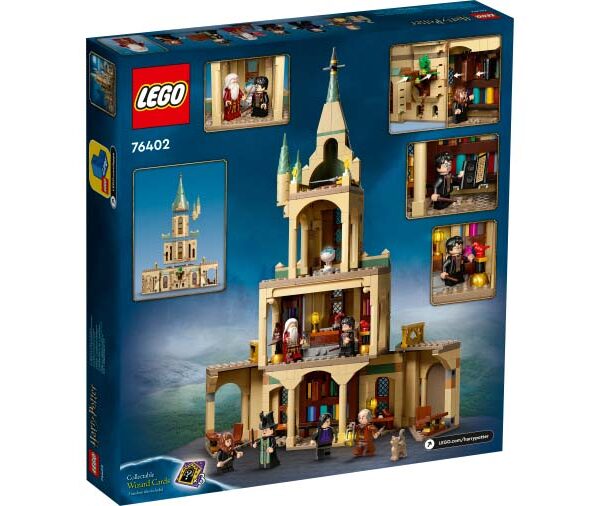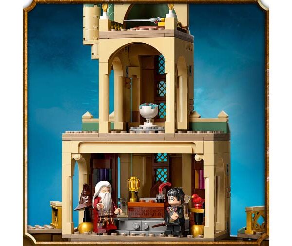 Acest set de joc Hogwarts cu niveluri multiple include mai multe secţiuni care vor inspira joaca fantezistă, fiecare dintre ele fiind plină de detalii autentice din seria de filme populare. Setul include 6 minifigurine: Harry Potter, Hermione Granger™, Albus Dumbledore™, Severus Snape™, Argus Filch şi Madame Pince. Elementele familiare includ Mantia invizibilă, dispozitivul Pensieve care păstrează amintiri, legendara Sabie a lui Gryffindor, celebrul Joben magic şi puiul Fawkes care se ridică din cenuşă.