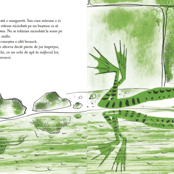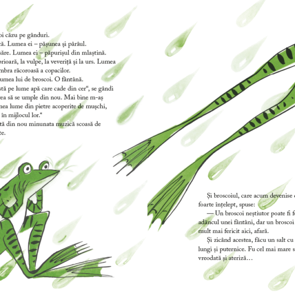 Alaturi de micul broscoi, copiii vor descoperi ca, pe drumul spre cunoasterea de sine, pot invata multe din confruntarea – inevitabila, dar in acelasi timp fertila – dintre parerile proprii si ale celorlalti.