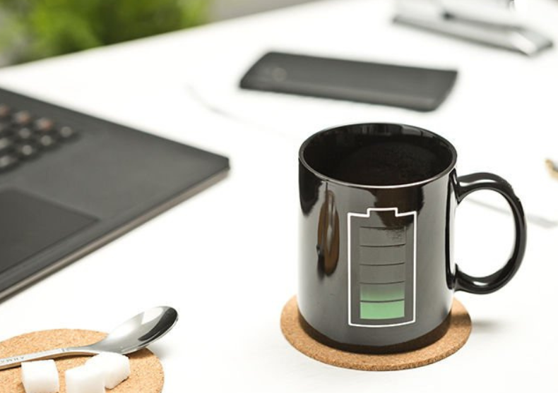 Fiecare dimineață reprezintă prilejul perfect ca să ne încărcăm cu energie pozitivă și să le arătăm tuturor de ce suntem în stare. Acum avem și cană potrivită pentru asta, Cana-baterie! Aceasta se înfierbântă odată cu noi și cu licoarea caldă pe care o consumăm. Pe măsură ce băutura se răcește sau e consumată, bateria „se descarcă”, așadar fă bine și bea cafele sau ceaiuri fierbinți cât mai des!