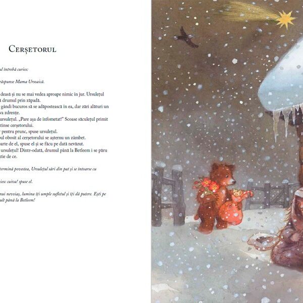 Cu mult inainte de primele zile din decembrie, magazinele sunt deja pline de decoratiuni, dulciuri si alte produse de Craciun. Ce putem face, impreuna cu copiii nostri, pentru a incetini cumva aceasta graba, pentru a trece peste tentatiile insistente ale ofertelor comerciale de toate felurile in speranta de a descoperi sensurile mai adanci ale sarbatorii? Cum ne putem bucura, ramanand cu amintirea durabila a unor clipe fericite petrecute in familie, de zilele de inceput de iarna care trec in asteptarea Craciunului? Poate ca tot povestile sunt cea mai potrivita solutie, ca de atatea ori.
