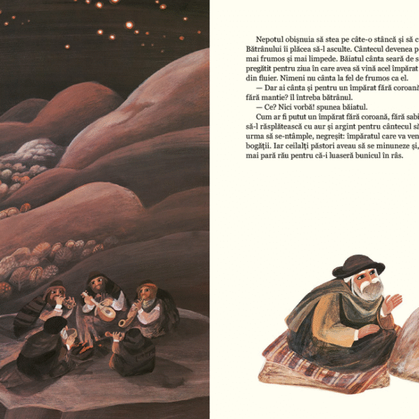 Batranului pastor nu-i pasa prea mult de vorbele celorlalti. Asa vorbesc oamenii de cand e lumea. Insa il doare ca nici nepotul sau nu e prea increzator. Il intreaba mereu pe bunic cum va fi acel mare imparat. Copilul nu si-l poate imagina decat cu coroana, sabie si mantie – ca un imparat din povesti, cum altfel? Iar gandul ii sta si nepotului tot la aurul si argintul cu care, fara indoiala, acel imparat il va rasplati pentru cat de frumos stie sa cante la fluier. Si daca marele imparat nu va fi asa cum isi inchipuie el, plin de bogatii? il intreaba batranul pe nepot. Ii va mai canta? Nici vorba, raspunde copilul.