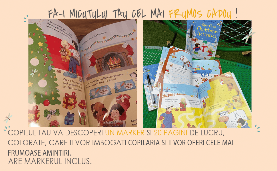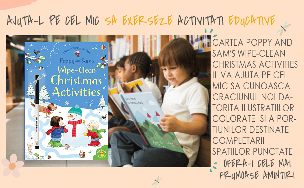 “Poppy and Sam’s Wipe-Clean Christmas Activities” este cadoul perfect pentru perioada festiva, ajutandu-i pe copii sa isi dezvolte coordonarea mana-ochi, abilitatile de rezolvare a problemelor si creativitatea, in timp ce se bucura de spiritul Craciunului.