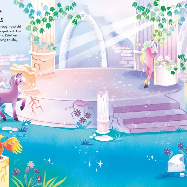 Descriere: Alătură-te acestor ponei magnifici în timp ce zboară prin cer, se plimbă în jurul unui castel și explorează o peșteră de cristal. Copiii mici vor adora să adauge peste 170 de autocolante, inclusiv autocolante strălucitoare speciale, la aceste scene magice.