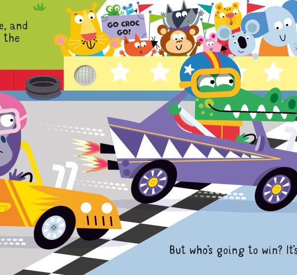 Motorul care tureaza, roti care screeaza, multimi care aplauda… toata excitarea de a conduce o masina de curse prinde viata atunci cand apesi butoanele din aceasta carte. Alatura-te lui Croc, soferul de curse, in timp ce ea zboara pe pista si incearca sa castige cursa!