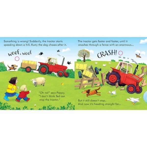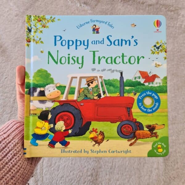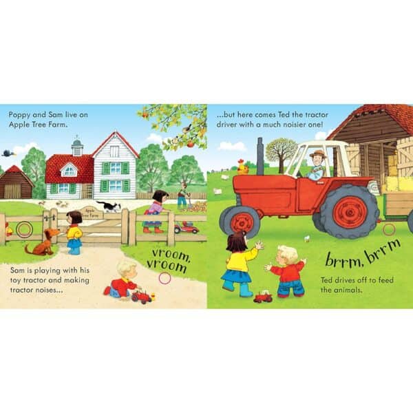 “Poppy and Sam’s Noisy Tractor” de la Usborne este o carte interactiva ce ilustraza aventurile vesnice ale lui Poppy si Sam cu tractorul lor zgomotos. Cartea este dotata cu butoane care emit sunete de tractor, astfel incat copiii pot simti mai bine atmosfera fermecatoare a fermei.