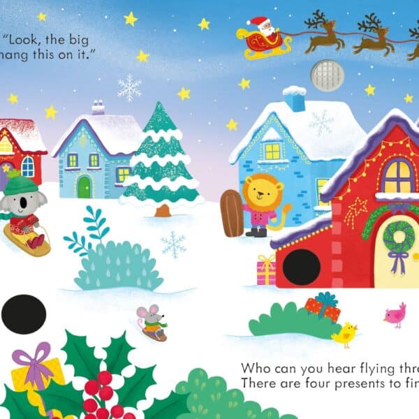 Fiecare pagina dezvaluie o noua scena din lumea feerica a Craciunului, impreuna cu un buton sonor asociat, oferind copiilor sansa de a se imersa complet in atmosfera sarbatorilor.