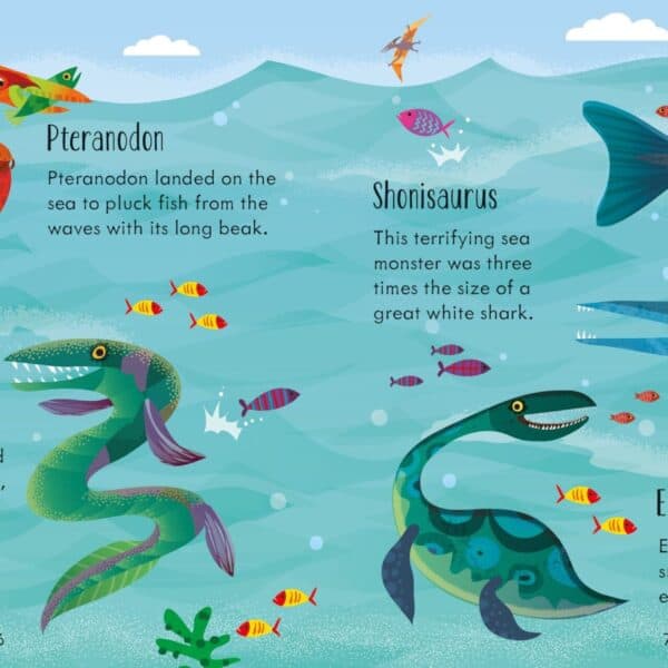 Exista, de asemenea, o carte cu povesti despre dinozauri si instructiuni pentru a juca jocurile la diferite niveluri, in functie de varsta copilului.