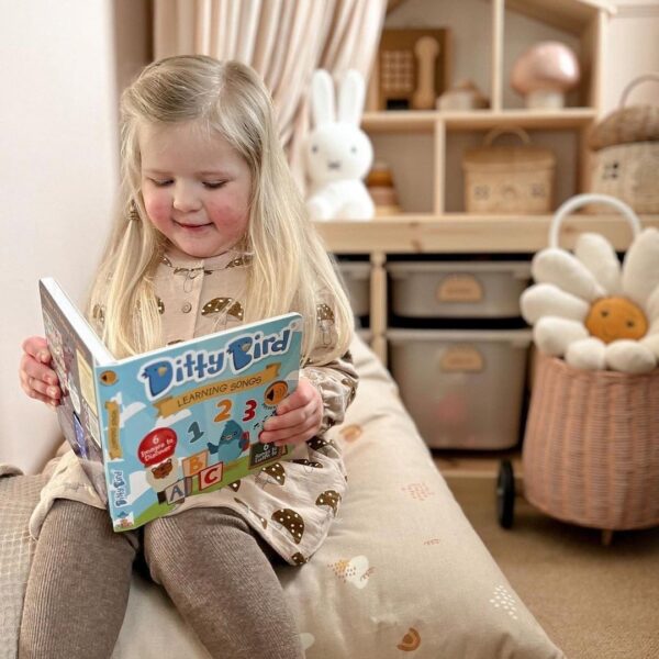 Citeste, asculta, canta impreuna cu Ditty Bird in timp ce canta melodii usor de invatat. “Punctul sonor” de pe fiecare pagina activeaza una dintre cele sase melodii populare de invatare, cantate de copii. Imaginile frumoase ii vor tine atentia bebelusului tau chiar si mai mult timp.