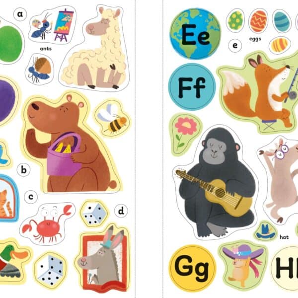 “First Sticker Book abc” este o carte interactiva menita sa familiarizeze copiii cu alfabetul intr-un mod distractiv si captivant. Fiecare pagina prezinta o litera a alfabetului, insotita de ilustratii si spatii in care pot fi lipite autocolantele. Aceasta carte ajuta la dezvoltarea abilitatilor de recunoastere a literelor, coordonare mana-ochi si dezvoltare a motricitatii fine.