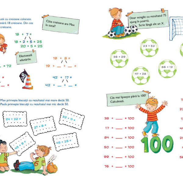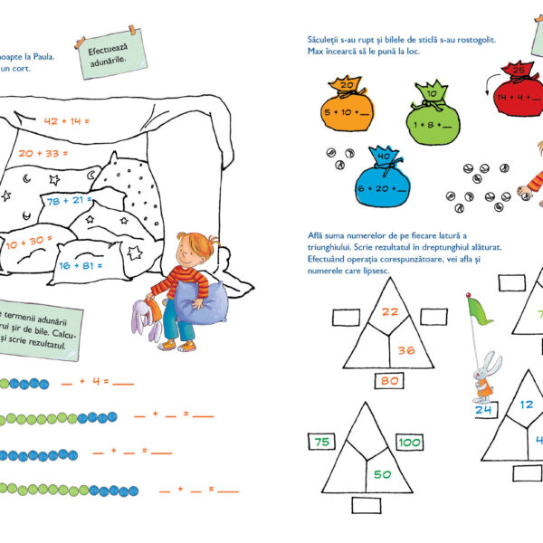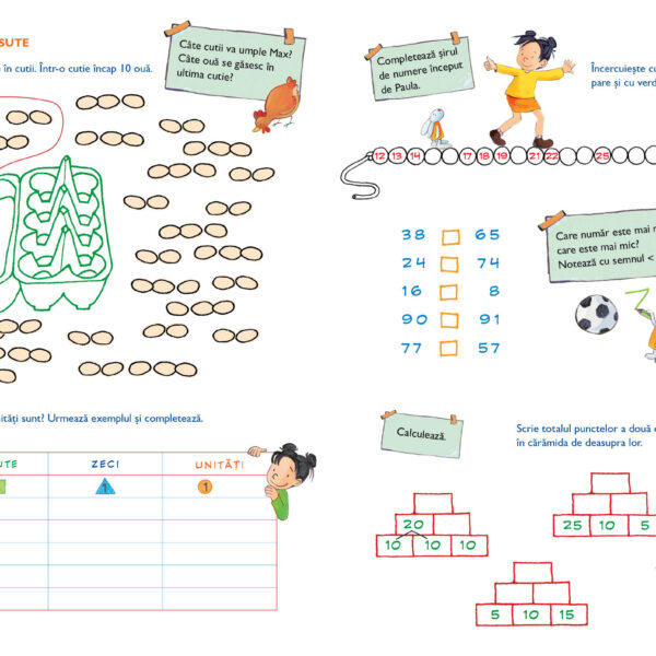 Acest caiet are numeroase exercitii in acest scop, ajutandu-i pe cei mici sa se familiarizeze cu conceptele matematice intr-un mod distractiv si interactiv.