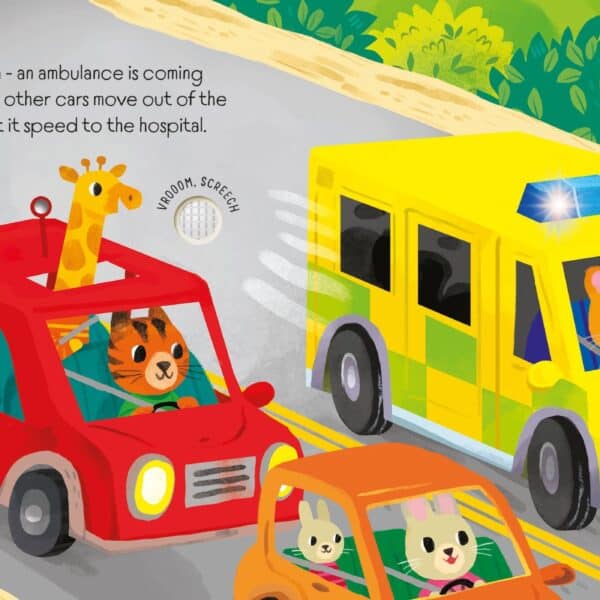 “Lights and Sounds Emergency Vehicles” o carte, care aduce la viata agitatia si actiunea vehiculelor de urgenta. Fiecare vehicul este echipat cu lumini stralucitoare si sunete realiste, de la sirenele puternice ale masinii de pompieri pana la bip-urile rapide ale ambulantei.