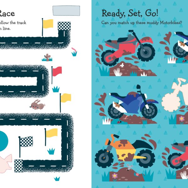 Cartea include 80 de autocolante, jocuri si puzzle-uri distractive. Exista activitati de colorat, jocuri de numarare si jocuri punct la punct, impreuna cu jocuri de cautare si gasire si labirinturi distractive.