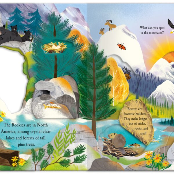 Formatul nostru decupat si ridica clapeta adauga un strat suplimentar de entuziasm. Urmareste cum copilul tau descopera surprize ascunse pe fiecare pagina. Cufundati-va copilul in magia muntilor cu cartea noastra unica si captivanta.