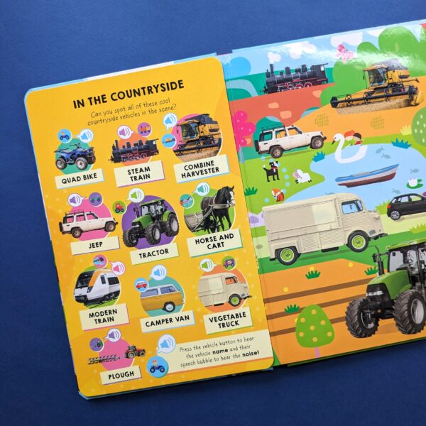 Copiilor le va placea sa apese butoanele pentru a auzi numele vehiculelor pe care le pot vedea, precum si sunetele reale pe care le scoate, ajutandu-i sa dezvolte o intelegere mai profunda a lumii din jurul lor.