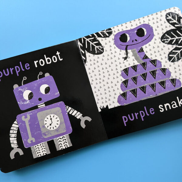 O introducere minunata in primele culori, aceasta carte alb-negru cu contrast ridicat are dimensiunea perfecta pentru cele mai mici maini!