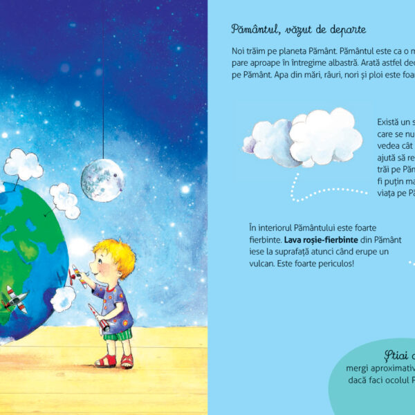 Descoperiti fascinanta lume a astrelor cu cartea “Vreau sa stiu: Totul despre Soare, Pamant si Luna”! Aceasta carte este perfecta pentru copii cu varsta de cel putin 4 ani si ofera imagini informative si captivante despre cele mai importante corpuri cerești. Ajutati-va micutii sa inteleaga mai bine universul in care traiesc si sa dezvolte o curiozitate sanatoasa pentru stiinta. O alegere excelenta pentru mamicile care doresc sa le ofere copiilor lor o educatie timpurie in limba engleza!