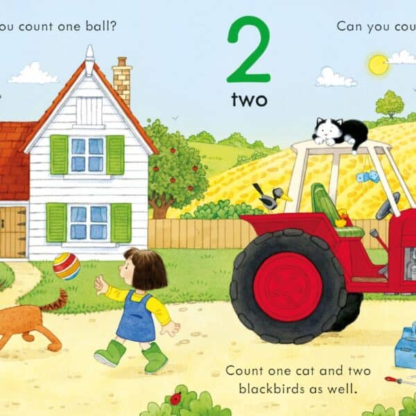 De la o ferma si 2 tractoare pana la 9 broscute si 10 iepurasi, fiecare scena frumos ilustrata este o modalitate perfecta de a exersa primele numere.