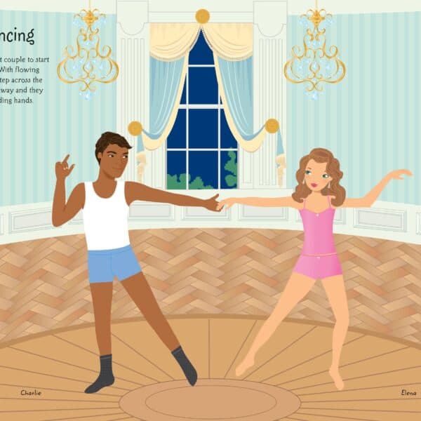 Aceasta carte cu stickere permite copiilor sa imbrace personajele din cartea lor in diferite costumatii de dans. Este o modalitate excelenta de a incuraja copiii sa exploreze diferitele tipuri de dans si culturi din intreaga lume.