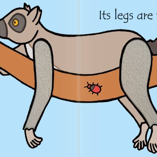O carte senzoriala care invata copiii despre lemurieni prin texturi diferite, dezvoltand perceptia tactila si cunoasterea animalelor.