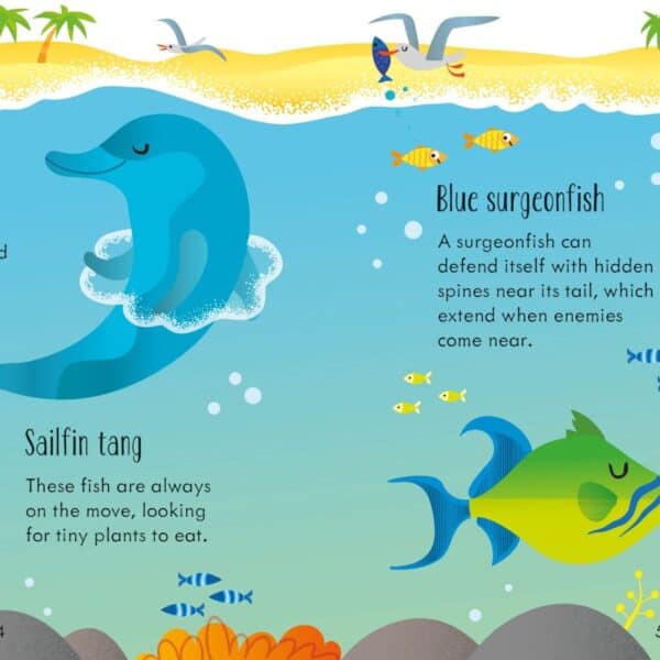 Setul de cutie contine 36 de cartonase ilustrate, 4 panouri de bingo si o carte cu instructiuni si fapte fascinante. Exista o multime de creaturi submarine pentru a se potrivi si a vorbi despre ele.
