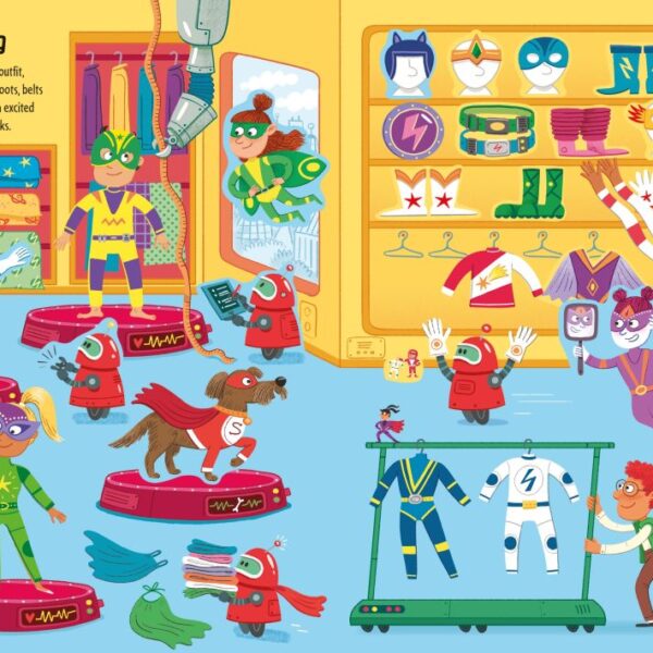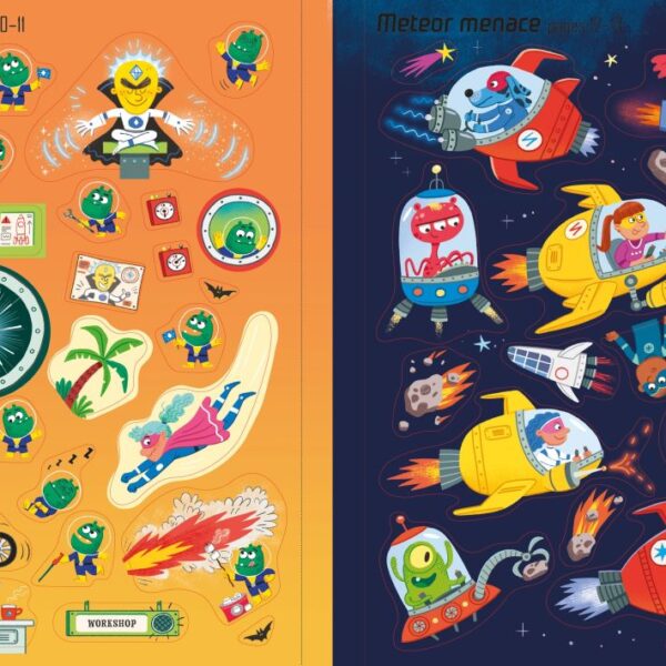 Whizz! Pow! Zap! Alatura-te supereroilor in timp ce indeplinesc tot felul de misiuni palpitante cu aceasta super carte de stickere. Copiii se pot distra ore intregi adaugand peste 200 de stickere pentru a completa scenele vii si detaliate, de la o batalie in oras, o ascunzatoare in vulcan si o baza subacvatica pana la Controlul Misiunii si Scoala de Supereroi.
