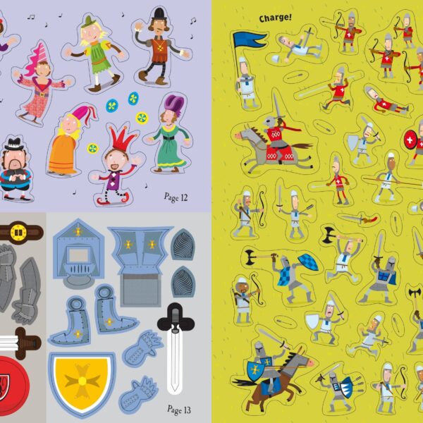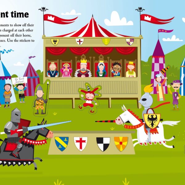 O carte fantastica de abtibilduri plina de cavaleri curajosi si castele magnifice. Completati scenele din vremea castelului folosind peste 400 de autocolante. Ai grija la cavalerii care intra in lupta, concureaza intr-un turnir, se imbraca si chiar se lupta cu un dragon care scuipa foc!