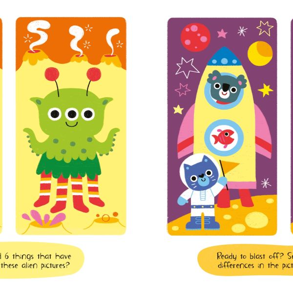 Aceasta carte Spot-the-difference ii va captiva pe cei mici ore intregi, in timp ce analizeaza puzzle-urile de pe fiecare pagina. Ilustratiile incantatoare includ tot felul de personaje, cum ar fi pudeli roz, flamingo patinatori si chiar koala astronaut.