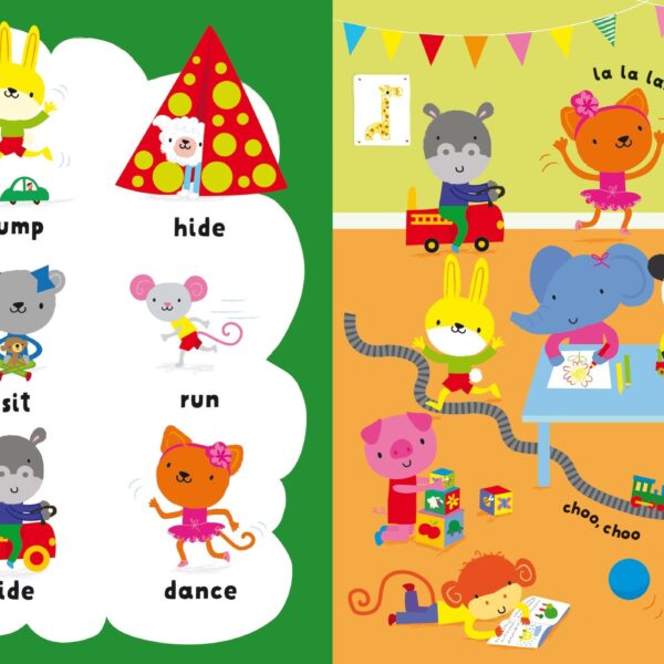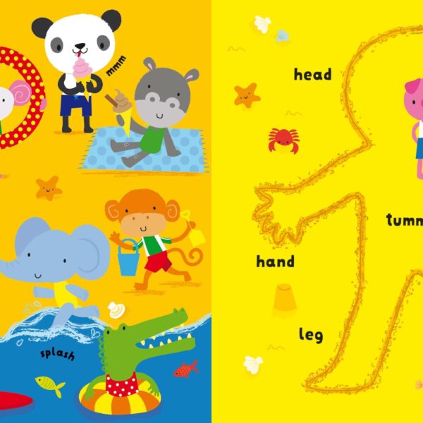 Aceasta carte de cuvinte incantatoare, plina de scene luminoase si aglomerate, este perfecta pentru a fi impartasita cu copiii foarte mici. Bebelusii si copiii mici vor invata cuvinte noi pe fiecare pagina, pentru parti ale corpului, precum si pentru actiuni, simturi si emotii.