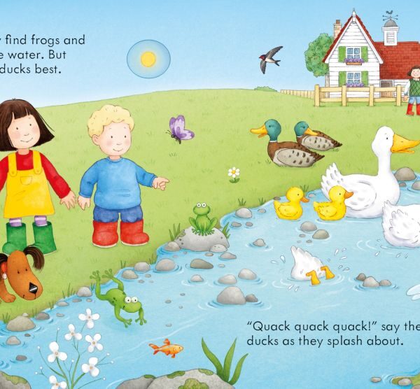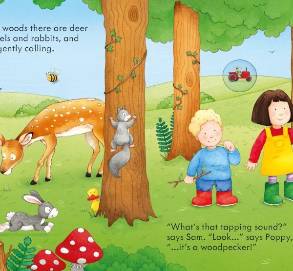 De la ratele care stropesc la albinele zumzaitoare si pasarile ciripitoare, aceasta carte ilustrata fermecator cu sunete este modalitatea perfecta de a ajuta bebelusii si copiii mici sa invete despre lumea naturala. Pe masura ce Poppy si Sam exploreaza padurea, campurile si malul raului, apasa butoanele pentru a aduce la viata animalele si pasarile. Exista multe detalii de privit si discutat impreuna, si bineinteles, un mic ratoi galben de gasit pe fiecare pagina.