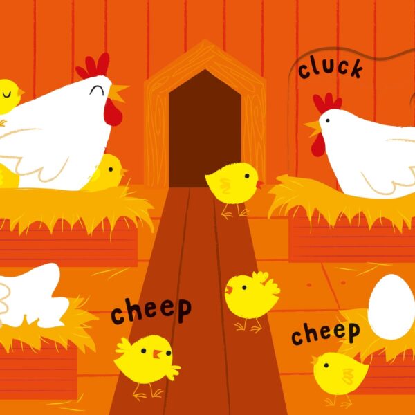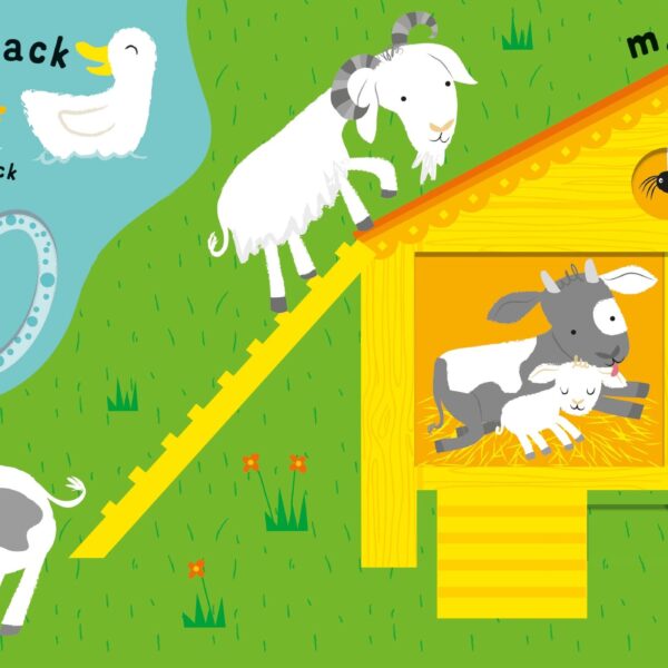 Ce o face atât de specială? Mecanismele glisante ușor de folosit chiar și de mânuțele celor mai mici cititori. Pe fiecare pagină, copilul este invitat să gliseze o parte din imagine și să descopere ce se ascunde dedesubt: găinușe care ciugulesc, o vacă ce își mișcă coada sau un purceluș curios care se ascunde în paie. Fiecare interacțiune dezvoltă coordonarea mână-ochi, dexteritatea și atenția.