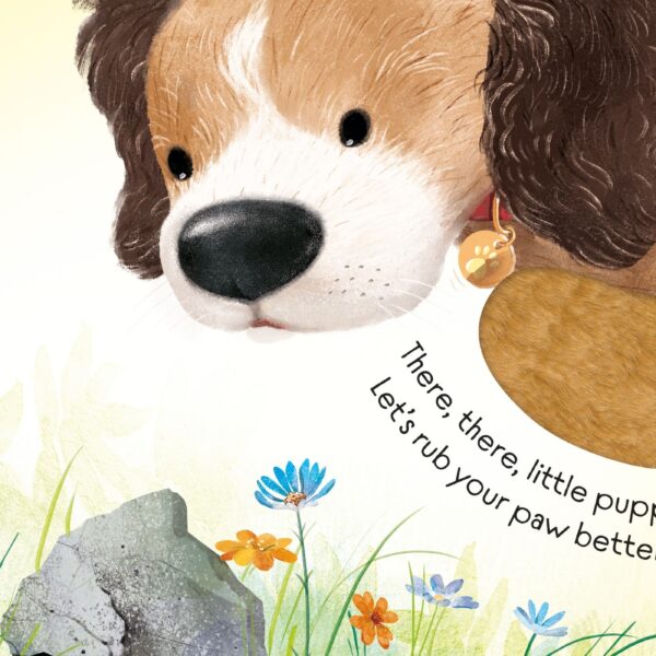 Descoperiti o lume plina de dragoste si ingrijire cu aceasta carte adorabila! Mângâiati acest cățel simpatic pe paginile cărții și oferiti-i o gâdilare pe burtica la final. Bebelușii și copiii mici vor adora să aibă grijă de cățel, mângâindu-i urechile după ce a întâlnit o plantă spinoasă, frecându-i nasul moale și gâdilându-i burtica pufoasă. La finalul cărții, cățelul se simte mult mai bine. O experiență senzorială liniștitoare pentru momentele de liniște, această carte încurajează micuții să învețe despre bunătate și grijă.
