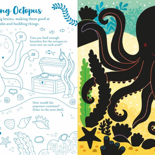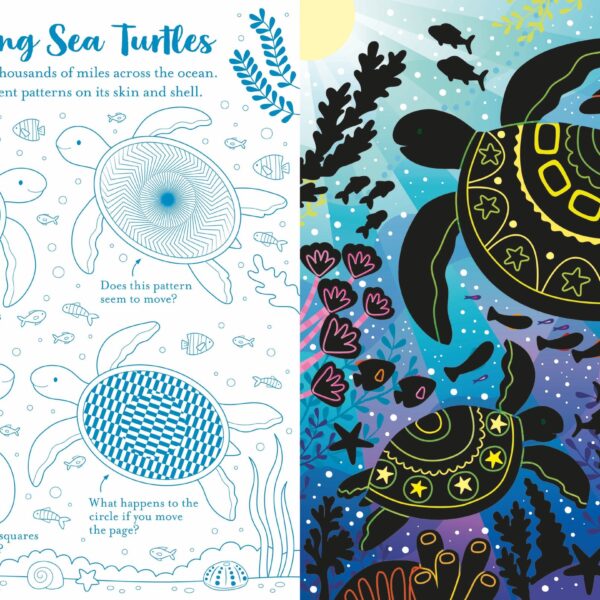 Aceasta carte de activitati scratch este plina de creaturi marine uimitoare si patch-uri invitante de zgariat. Folosind racleta din lemn inclusa, zgariati patch-uri intregi pentru a dezvalui detalii ascunse sau zgariati linii si modele pentru a crea propriile desene. Fiecare pagina de arta scratch are o pagina opusa cu teme de colorat si puzzle-uri legate de ocean. Usor si relaxant, cu rezultate satisfacatoare garantate.