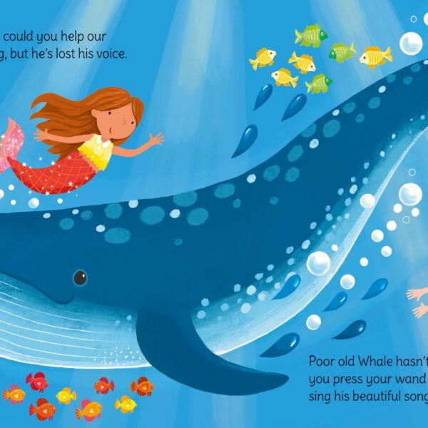 Cu o baghetă magică inclusă, micile cititoare pot face ca povestea să prindă viață. Pe fiecare pagină frumos ilustrată, o simplă atingere activează o vrajă sonoră: o briză care ghidează o barcă, o vrajă care îl ajută pe un pui de delfin să înoate… iar magia e declanșată chiar de EA!