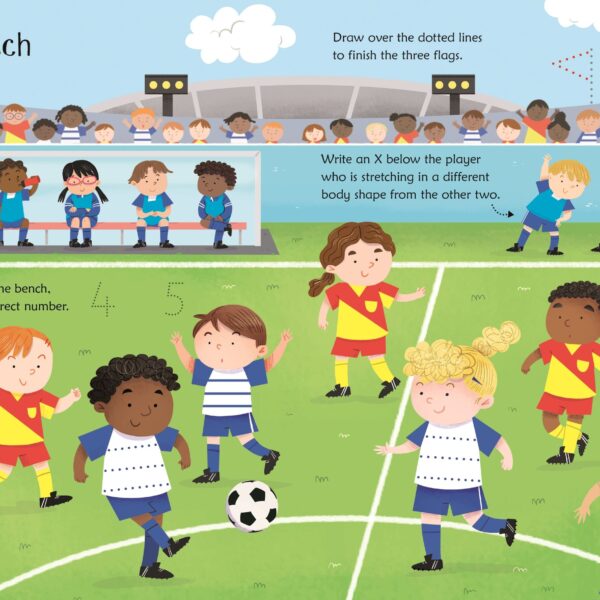 Plina de activitati pentru a-i ajuta pe copii sa-si dezvolte abilitatile de control al stiloului, aceasta carte distractiva este plina de labirinturi cu tematica fotbalistica de rezolvat, puncte de imbinat, diferente de observat, obiecte de gasit si numarat, precum si imagini simple de desenat. Mainile mici vor gasi stiloul confortabil de tinut, iar cerneala se sterge usor fara mizerie, astfel incat copiii sa se poata bucura de activitati din nou si din nou.