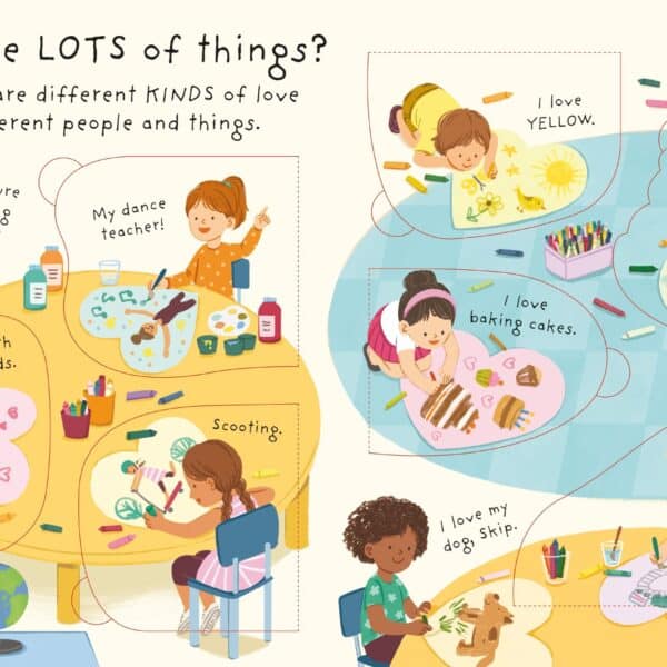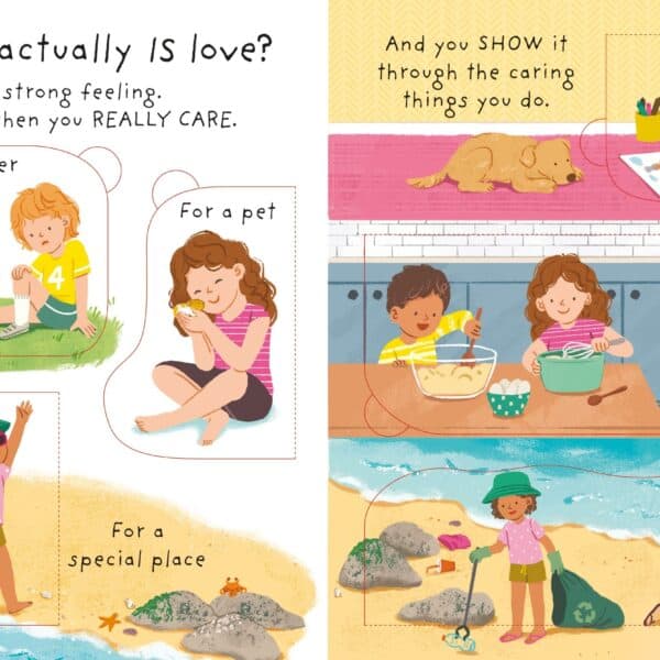 Cartea “Very First Questions & Answers: What is Love?” face parte din seria “Very First Questions & Answers” de la Usborne, destinata copiilor mici. Aceasta carte abordeaza tema iubirii intr-un mod accesibil si intelegator pentru varstele fragede, incercand sa explice ce este iubirea prin exemple si situatii cu care copiii se pot identifica.