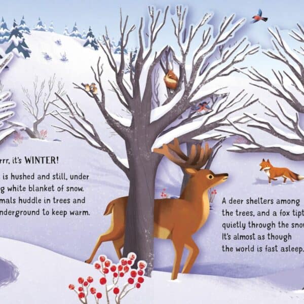 “Pop-Up Seasons” de la Usborne este o carte interactiva care ii conduce pe copii printr-o calatorie fascinanta prin cele patru anotimpuri. Fiecare pagina este dedicata unui anotimp, cu elemente pop-up care aduc la viata peisajele schimbatoare. De la iarna geroasa la vara sclipitoare, copiii pot descoperi frumusetea si diversitatea fiecarui anotimp.