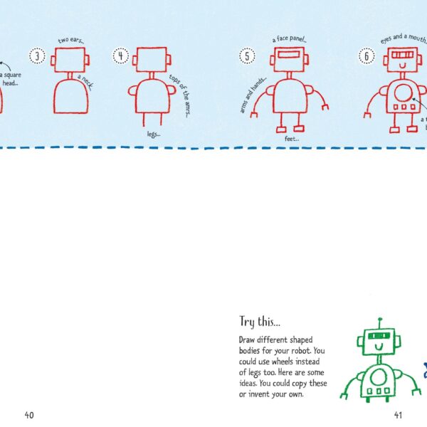 Descriere: De la rachete la roboți, maimuțe la monștri și multe altele, află cum să desenezi tot ce ai dorit vreodată urmând instrucțiunile simple pas cu pas din această carte inspirațională. Copiii mici vor simți un adevărat sentiment de realizare stăpânind activitățile simple de desen din această carte. Include mult spațiu în carte pentru a-ți exersa propriile desene. O activitate distractivă de care se vor bucura și adulții!