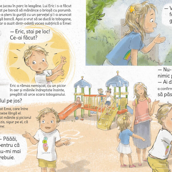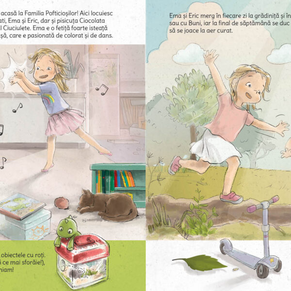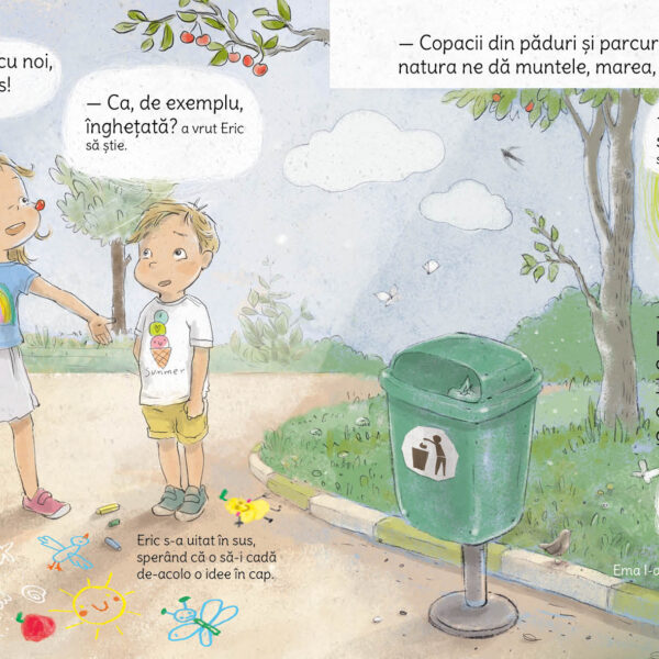 În această carte pentru copii micuți, frații Ema și Eric descoperă împreună cât de mult rău putem face naturii dacă nu suntem atenți, dar și ce poate face fiecare dintre noi, oricât de mic ar fi, pentru a proteja planeta de poluare.