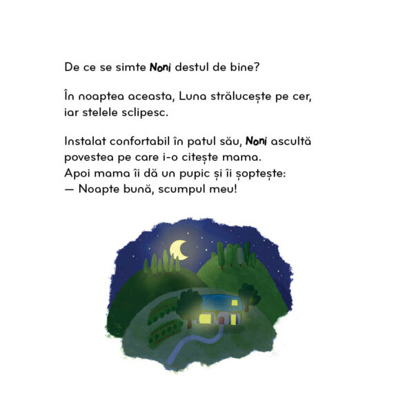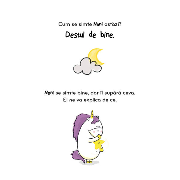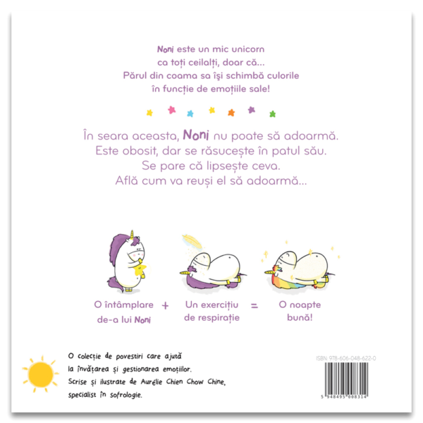 O carte pentru copii despre emotii cu unicornul Noni care ii ajuta pe copii atunci cand vine ora de culcare dar le este greu sa adoarma. Aceasta carte este perfecta pentru mamici care cred ca copiii lor vor deveni mai inteligenti daca citesc carti in limba engleza. Citind aceasta poveste, copiii vor invata sa-si inteleaga si sa-si gestioneze emotiile, facand din ora de culcare un moment mai placut si mai linistit.