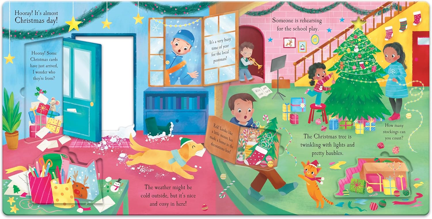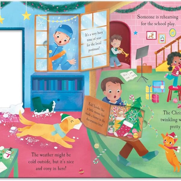 De la brazi strălucitori la distracție înghețată, descoperă magia Crăciunului cu această încântătoare carte decupată. Privește prin ferestruici și ridică clapetele – ce poți vedea? Formatul nostru cu decupaje și clapete adaugă un plus de emoție. Urmărește cum copilul tău descoperă surprize ascunse pe fiecare pagină. Cufundă copilul în magia Crăciunului cu această carte unică și captivantă. Ilustrațiile încântătoare aduc Crăciunul la viață, stimulând creativitatea copilului și încurajând dragostea pentru lectură.