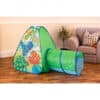 Casuta de carton, care se pliaza si se imbina pentru a lua forma respectiva cu o inaltime de aprox. 96,5 cm. Casa are mai multe detalii, cum ar fi usi si ferestre deschise, modele desenate, floricele, un gard si un acoperis cu tigla. Peretii albi si acoperisul pot fi colorati cu vopsele, creioane sau orice altceva. Este un proiect creativ si super distractiv.