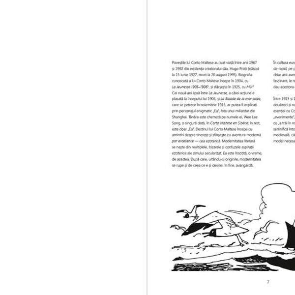 Cand compune lumea lui Corto Maltese, linia desenului lui Pratt are un nu-stiu-ce misterios-nostalgic, o sugestie de mai-mult exprimat printr-o limitare voita la un doar-atat — un „doar-atat” al celui care fie stie, fie stie ca a stiut ca, in lumea ireversibilului si irepetabilului, nimic nu merge mai mult (rien ne va plus striga crupierii cand jocurile sunt deja facute). In acelasi fel, compozitiile lui grafice, atat de persuasive, in ciuda unor stangacii (ale corpurilor in miscare, uneori; ale neasemanarii unor chipuri, alteori; ale unor decoruri brusc pueril desenate, cateodata), degaja o extraordinara mireasma de autenticitate. Ea provine, desigur, din rafinamentul artistului: el uzeaza de primitivism, dar, mai presus de asta, autenticitatea vine din sugestia, intretinuta de desen, ca tot ce vedem apartine unui trecut al originilor, nu unui trecut al istoriei. (Horia-Roman Patapievici, fragment din prefata)