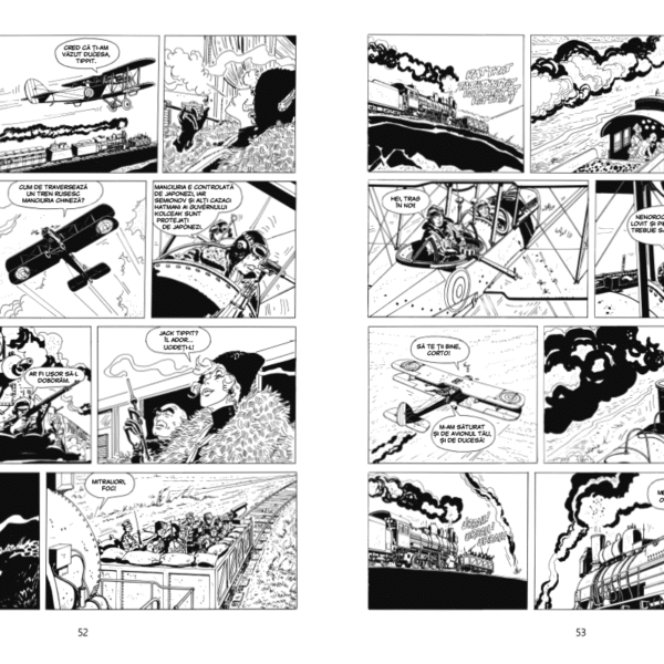 I.M.: Adevarul e ca albumul te „prinde” de la primele pagini. Amestec de fictiune si realitate istorica, de dragoste si razboi, de aventuri senzationale (devalizarea „trenului cu aur” al amiralului Kolceak) si discursuri neasteptate (anarhistul Rasputin facand apologia furtului ca forma de circulatie libera a banilor – reinvestiti pe piata pentru acoperirea placerilor personale), albumul este unul dintre cele mai palpitante ale lui Hugo Pratt. Daca Dostoievski si Hemingway ar fi scris impreuna un roman, asa ar fi aratat.