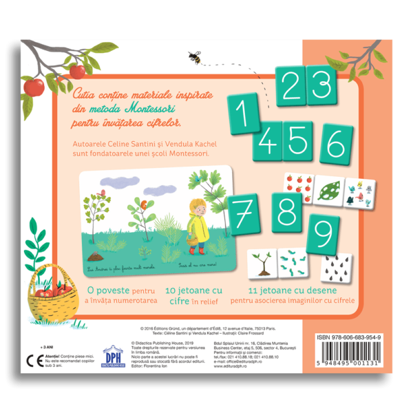 Cutia este perfecta pentru mamicile care doresc sa le ofere copiilor lor o baza solida in numeratie, intr-un mod care sa le dezvolte abilitatile cognitive. Cu ajutorul acestei cutii, copiii vor invata sa recunoasca si sa foloseasca cifrele, pregatindu-se astfel pentru viitor.