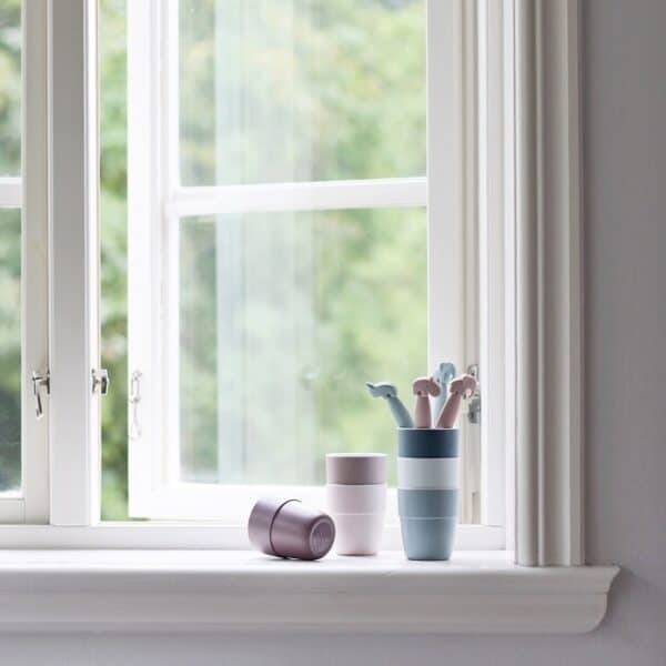Aceste cani din melamina de la Done by Deer sunt concepute dintr-un material neaderent special pentru a putea fi prinse de manutele celor mici cand acestia invata sa bea singuri. Dimensiunea mica a canutelor, precum si marginile moi si netede se potrivesc perfect cu mana mica a bebelusului.