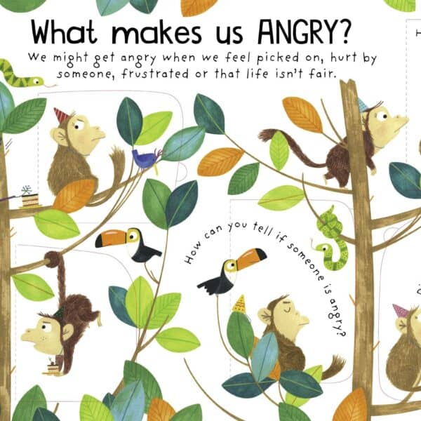 Cartea exploreaza o gama larga de emotii, inclusiv fericire, tristete, furie, frica, surpriza, si multe altele. Fiecare pagina se concentreaza pe o emotie specifica, oferind explicatii simple, dar eficiente, despre ce inseamna aceasta si de ce oamenii o simt.